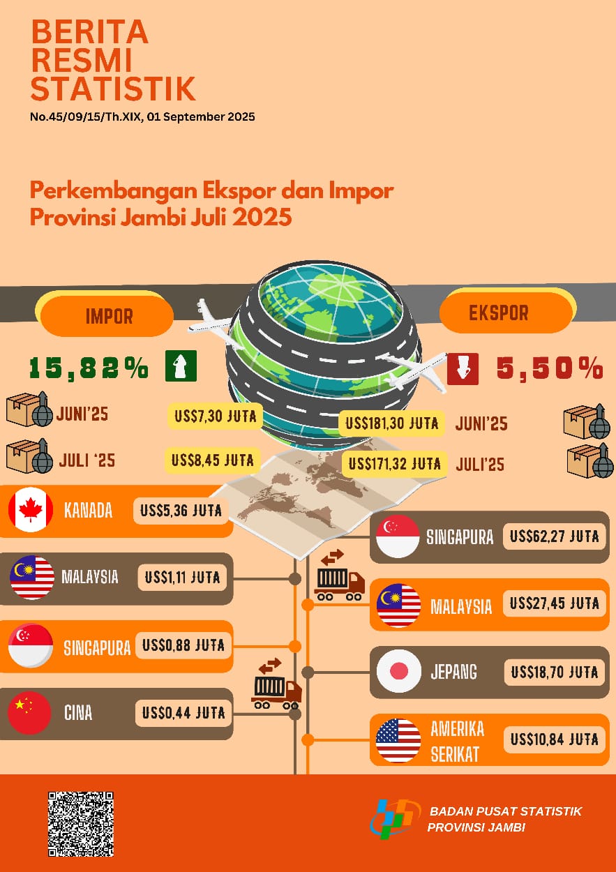 Perkembangan Ekspor dan Impor Bulan Juli 2025 Provinsi Jambi