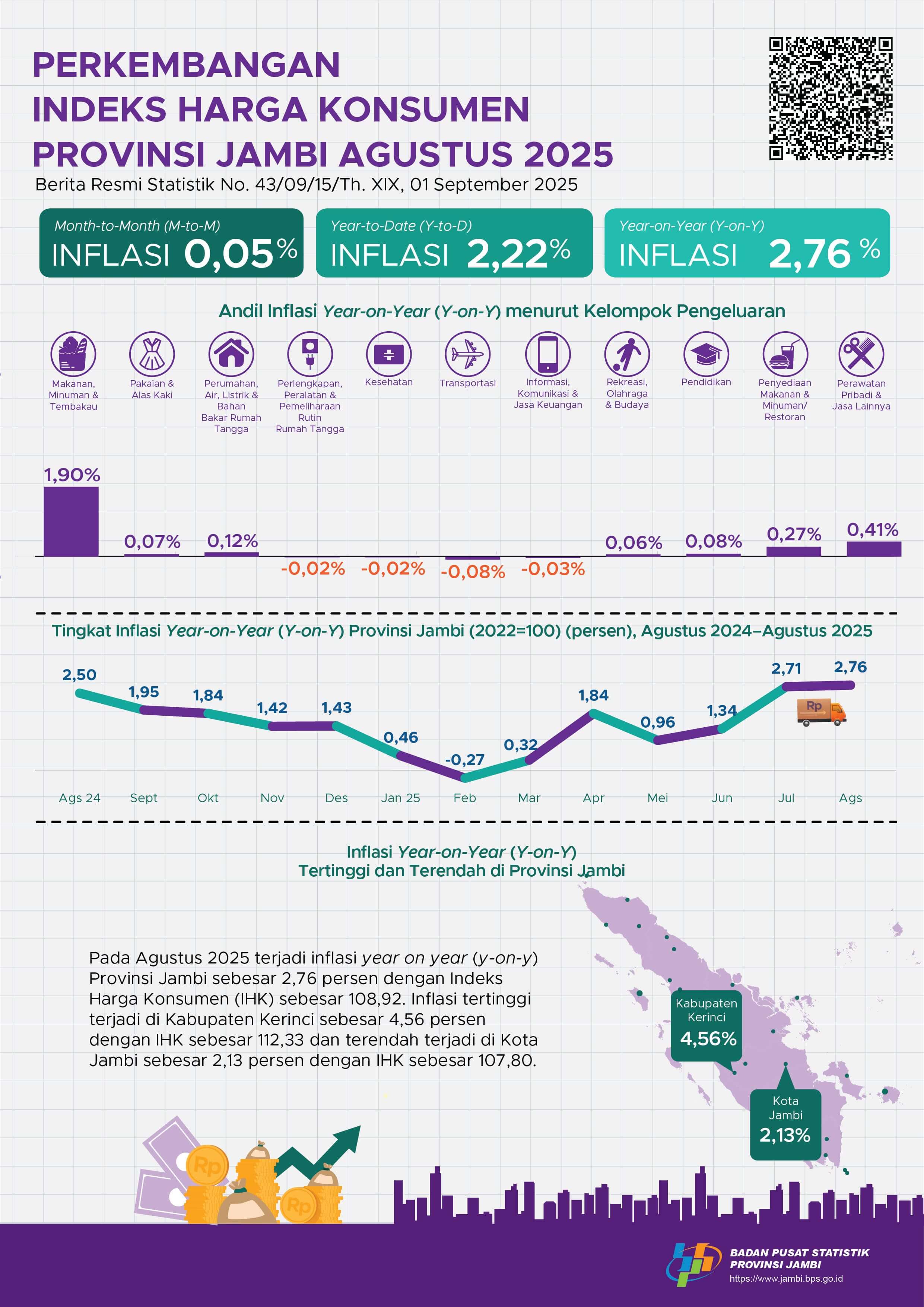 Perkembangan Indeks Harga Konsumen Bulan Agustus 2025 Provinsi Jambi
