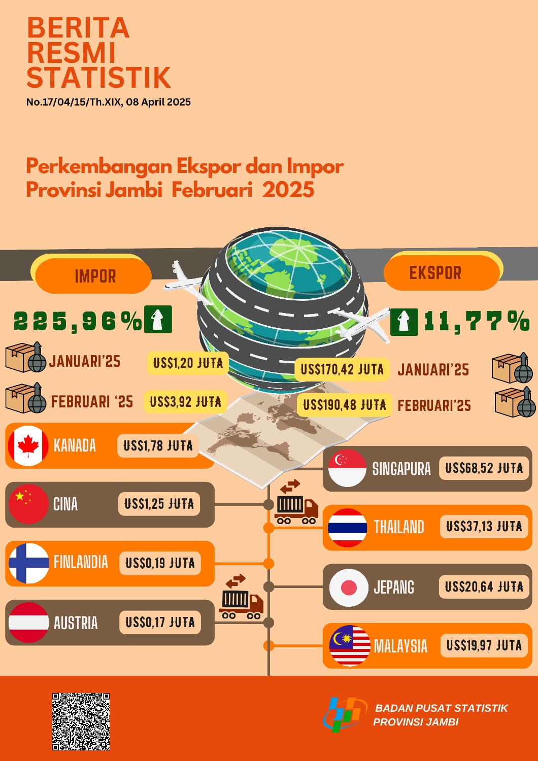 Perkembangan Ekspor dan Impor Bulan Februari 2025 Provinsi Jambi