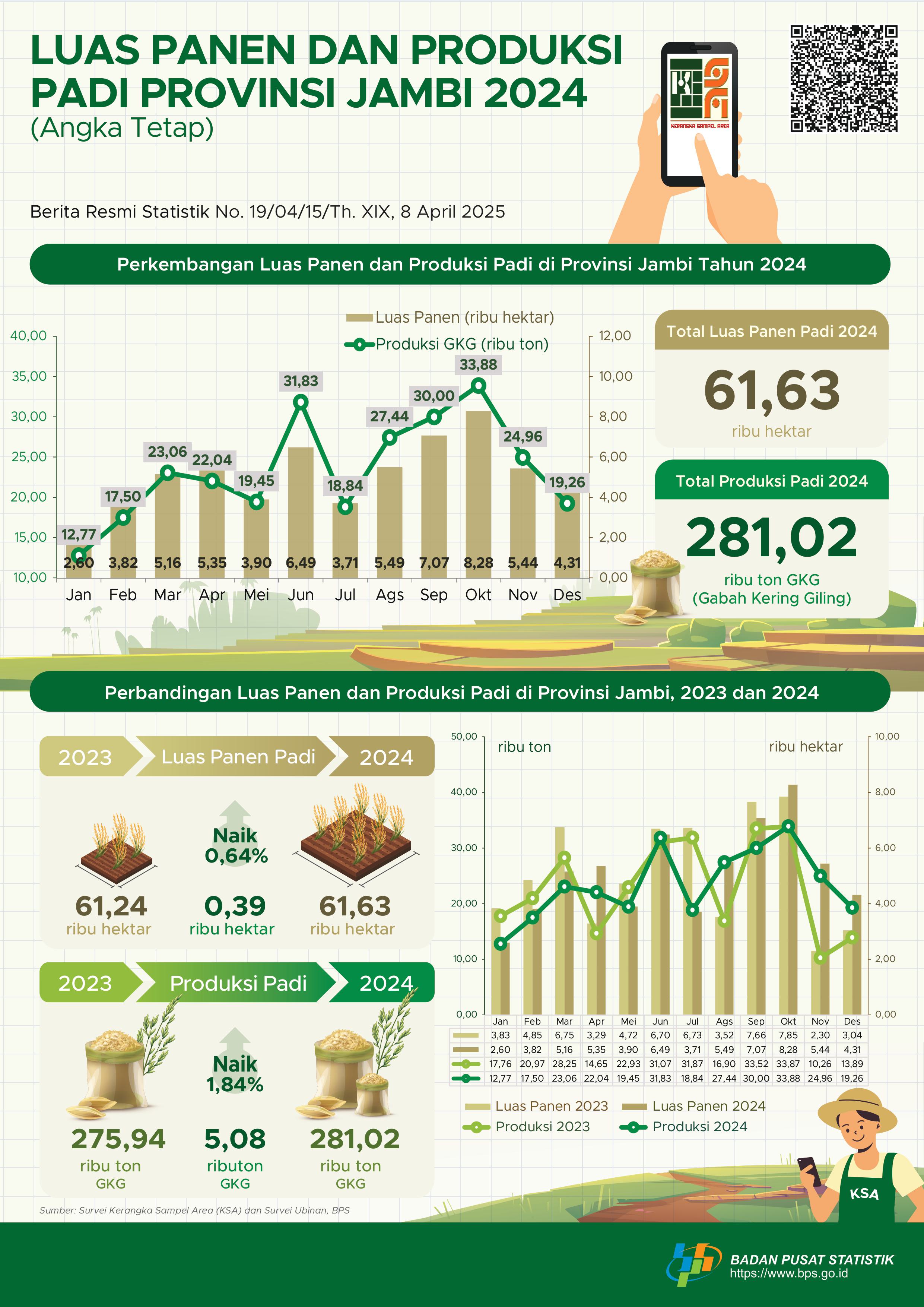 Luas Panen dan Produksi Padi 2024 (Angka Tetap) Provinsi Jambi