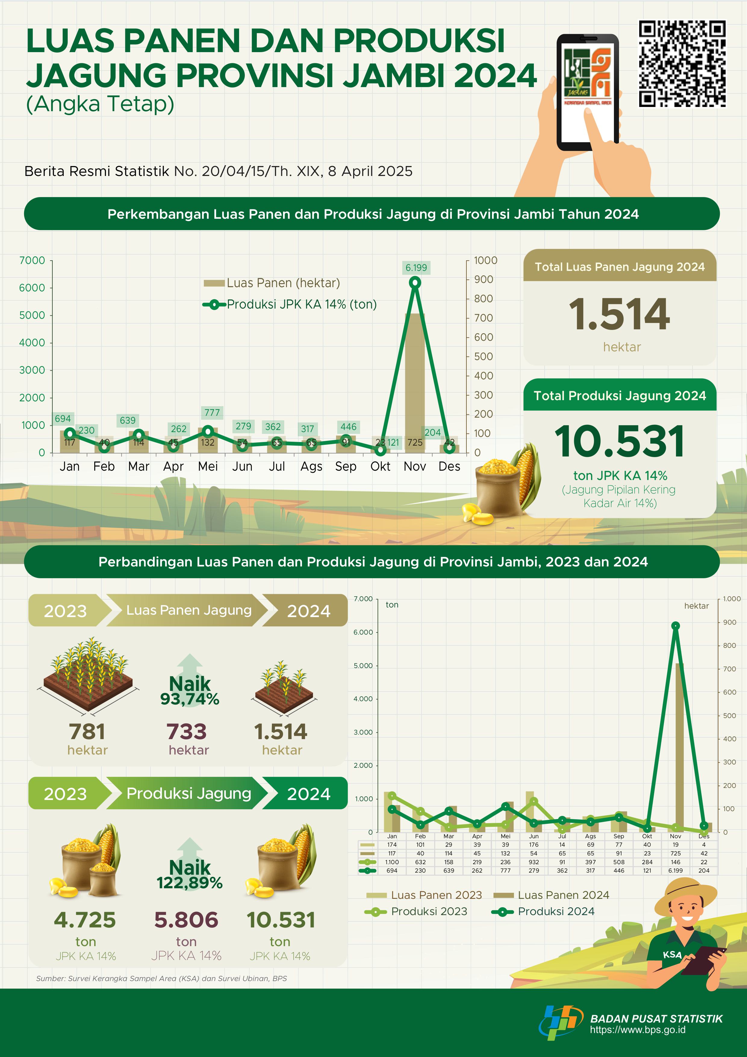 Luas Panen dan Produksi Jagung di Provinsi Jambi 2024 (Angka Tetap)