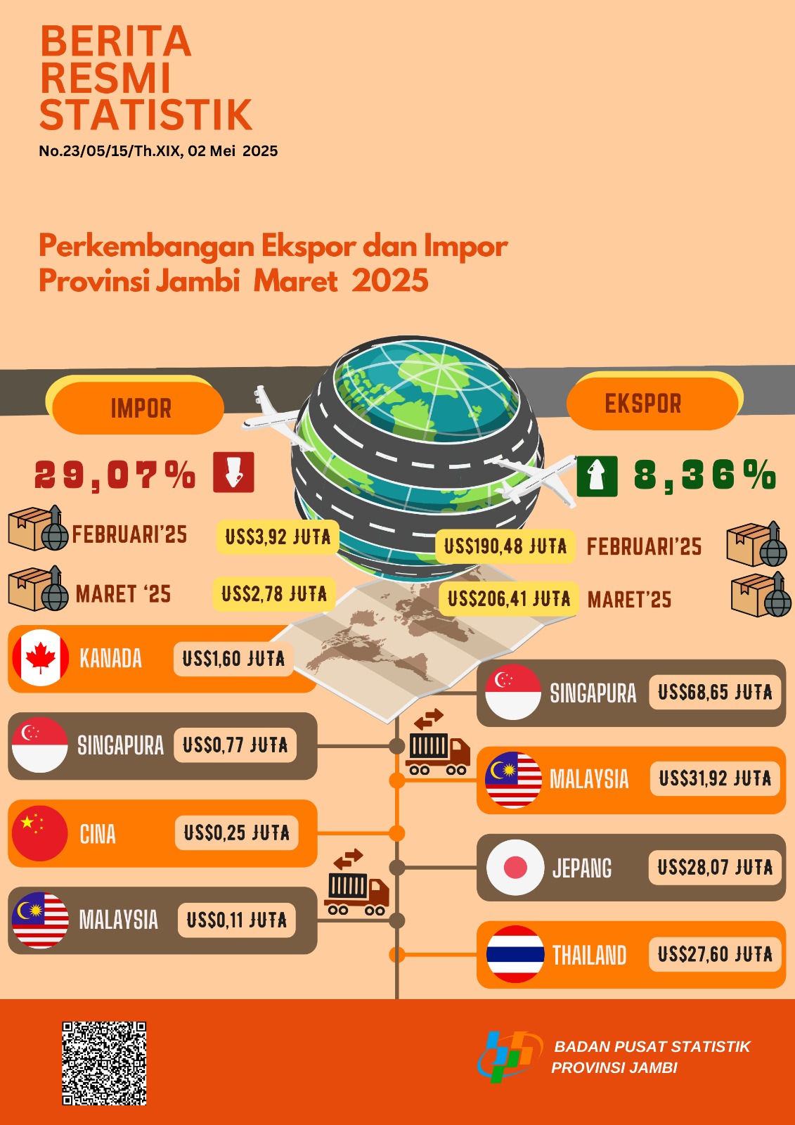 Perkembangan Ekspor dan Impor Bulan Maret 2025 Provinsi Jambi
